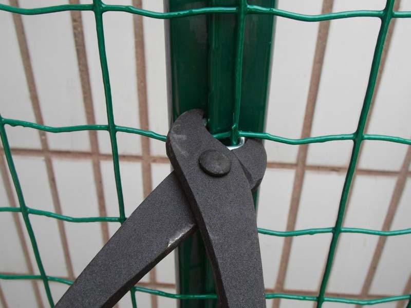 3. 網(wǎng)片用特制工具鉗把卡扣網(wǎng)片和立柱連接在一起。