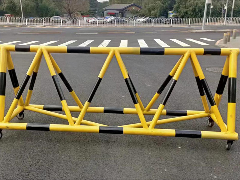 1.拒馬制作管材:拒馬管材一般選擇管直徑114mm、89mm、76mm、60mm等規(guī)格。厚度一般選用2.0mm、2.5mm、3.0mm等。采用鍍鋅管焊接而成,表面經(jīng)人工打磨后噴塑,貼紅色、黃色反光膜,底面帶剎車萬向輪,可選裝地插,背面帶刺。