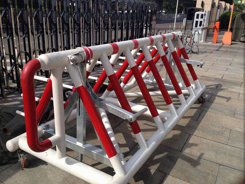 就是用來非常時期,眾人沖突及車輛闖卡攔車使用的鐵質(zhì)護欄,采取分別隔離人員及車輛的一種形式,形成隔離安全緩沖區(qū)。拒馬為可移動路障,拒馬為三角體柵欄式,可靈活推拉移動,底部焊接萬向剎車輪方便轉(zhuǎn)向移動。拒馬管材材質(zhì)一般為 A3鋼、鍍鋅、表面除銹噴漆或烤漆處理,防治陽光暴曬、雨淋、不生銹。