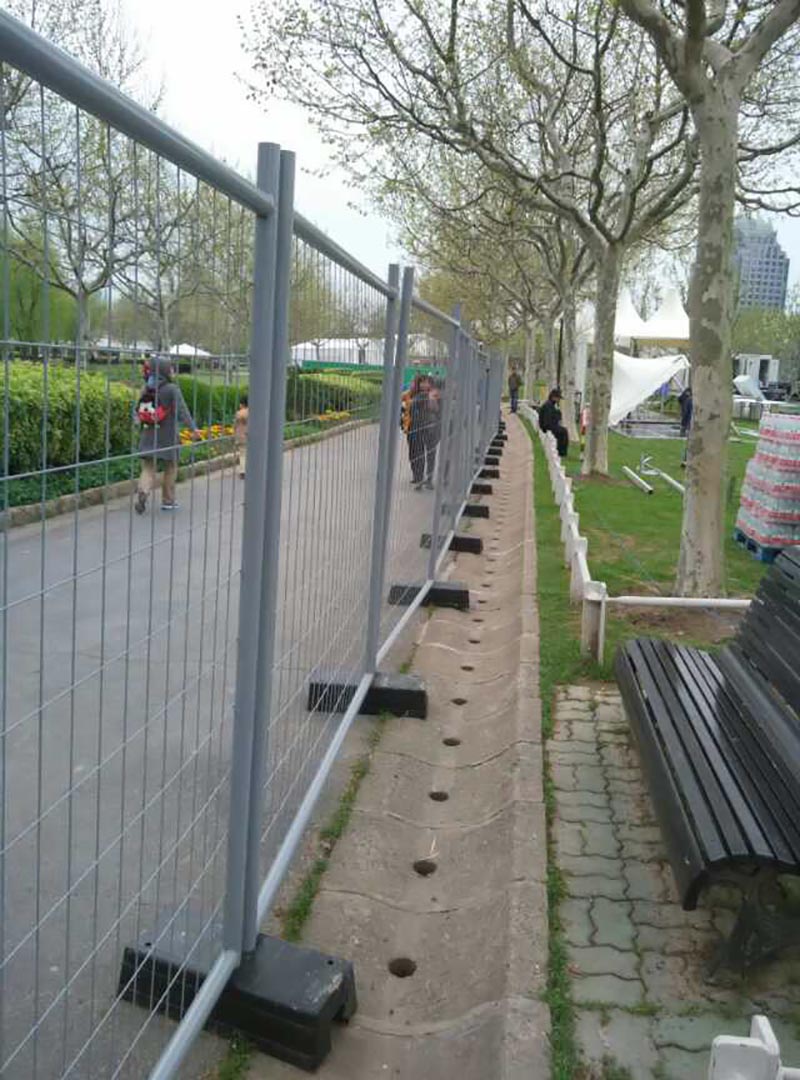 主要采用可拆接構件將護欄主片與底座或防護柱進行標準連接,等特定需要的時候可輕松拆除,進行移動安裝。